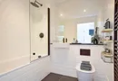 Both double bedrooms are generously sized, with the master benefiting from a sleek en-suite. The main bathroom features a bath with shower over, and both bathrooms are finished to a high standard with contemporary white suites and bold black fittings.