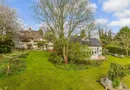 The detached annexe has a vaulted and beamed dual aspect lounge with a carved wood Victorian fireplace, a large bay window and French doors to the patio. There is a kitchenette, a bathroom and a dual aspect double bedroom with a door to a private terrace overlooking the circular fishpond. There are sweeping lawns, various seating areas, flower and shrub beds, a wildlife pond, trees and wooded areas in the semi-wild garden.