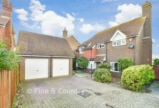 The house is approached via a wide driveway leading to an integral double garage and a contemporary front door that opens into a spacious vestibule with an inner glass door into a large hallway. The large country style kitchen/breakfast room includes wood units housing stand-alone appliances and an adjacent utility room, while the beautifully updated, light and bright dual aspect L-shaped lounge and dining area is delightful. It includes a coved ceiling and five bi-fold doors to the rear terrace. There is a rear lobby and access to the garage that has built in shelving and automatic garage doors.