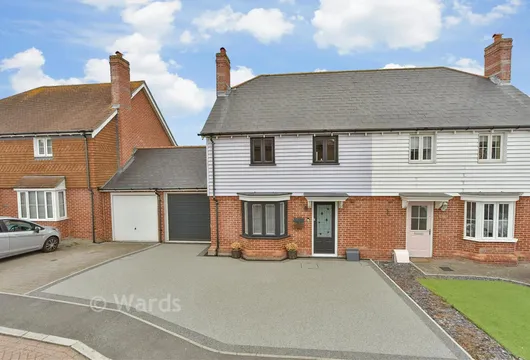 On the first floor, the generous bedrooms share a family bathroom while on the second floor the large primary bedroom provides a peaceful retreat, complete with a built-in wardrobe for practical storage and a private ensuite. The elegant bathroom includes a sleek white suite and a heated towel rail for added comfort. Meanwhile outside, you will find 2 parking spaces and an EV charging point.