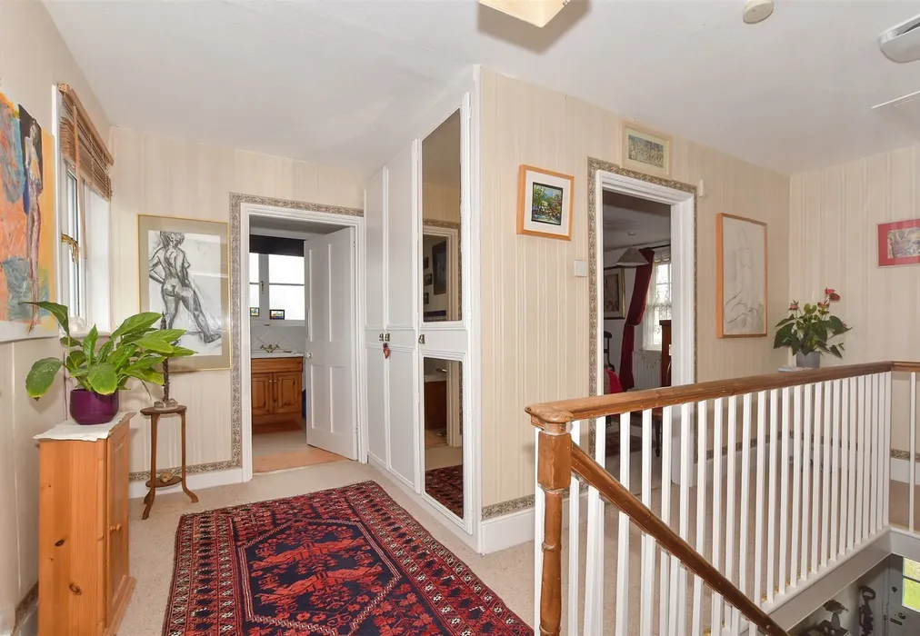 Generous room sizes and lots of feature fireplaces. Dining room could be used as a 4th bedroom, next to shower room, ideal for multi generational living. Delightful well stocked enclosed gardens, extending from the front to the side.