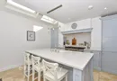 An open archway leads from the dining room to the stunning kitchen/breakfast room with Jerusalem Gold limestone flooring. It was designed by Tom Howley and features a stainless steel range cooker and Palma Grey shaker style units with Ucon quartz worktops housing various appliances. There is a central island/breakfast bar, French doors to the rear courtyard, an adjacent cloakroom and an equally well fitted utility room.