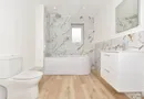 On the first floor there is a trendy family shower room and two double bedrooms including the main bedroom. This has a walk-in dressing room, a superb en suite bathroom and a door to the balcony. While, on the second floor, you will find a family bathroom and two good sized double bedrooms under partially vaulted ceiling with Velux windows.