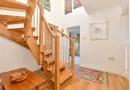 This impressive, four-bedroom property in the quaint coastal village of Bonchurch is situated in an elevated position, in a very desirable road of individual homes, affording views of the English Channel, framed by ancient trees. This much improved home has been finished to a very high specification and this, as well as the superb location, can really be appreciated both inside and out. First impressions count and this gorgeous entrance hallway really packs a punch with a stunning, oak stairwell perfectly complimented by the flooring. One of the most striking features of this house is that it is filled with light throughout due to the many large, south facing windows. The main living areas have been appropriately assigned to the south side of the property, meaning that they enjoy maximum sunlight and are subsequently bathed in light, and of course making them a place to enjoy the views. From the dining room the French doors can be thrown open onto a decked terrace, creating a lovely spot outside for taking in the view. The sitting room boasts two large windows that span the majority of the south wall that creates the illusion of a seamless transition between the inside and out. The kitchen is fully equipped with all modern appliances, including gas hob and electric oven, plus there’s conveniently an adjoining utility room with space for a freezer and tumble dryer. There are two double bedrooms on this floor, one of which also benefiting from the lovely views, as well as a contemporary shower room. At the top of the beautiful stairs is a beautiful gallery landing that’s bathed in light from the large window as well as fabulous skylight. There are two double bedrooms on the first floor, both with windows facing the view and benefitting from built in storage in the eaves, as does the impressive landing. There’s a lovely family bathroom with bathtub, as well as an ensuite shower room to the principal bedroom that boasts a fantastic double, level entry shower. Outside, the south-facing garden is pretty low maintenance with some mature plants and a huge swath of decking sweeping across the entire length of the garden, as well as a charming firepit; the ideal place to cosy up at night for some star gazing. The remainder of the garden wraps around the sides of the property to the front access road, where you’ll find a driveway and integrated garage.